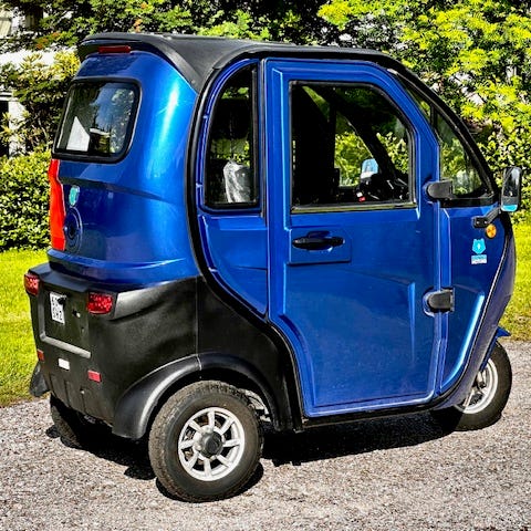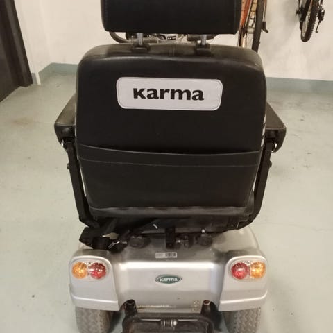 Skand sähköskootteri, kolmipyöräinen malli riemukkaan oranssin värisenä. Skootterissa on etuvalo, suuntavalot ja takavalot sekä peilit ohjaustangossa. Istuimessa on selkänoja ja käsinojat, ja takana on suuri metallinen tavarakori. Ajolava on matala helpottamaan kyytiin nousua. Sähkökäyttöinen kolmipyörä sopii esimerkiksi lyhyisiin ajoihin ja asiointimatkoihin päällystetyillä alustoilla, mikseipä myös sorateillä hiljalleen ajellen. Akut on uusittu reilu kaksi vuotta sitten, lataussyklejä tämän jälkeen todella vähän. 21.3. olen kaikki läpi käynyt ja kaikki pelaa. Toinen mittarivalo on pimeänä. Mukana ohjekirja, kuten kuuluukin ja tietenkin laturi.