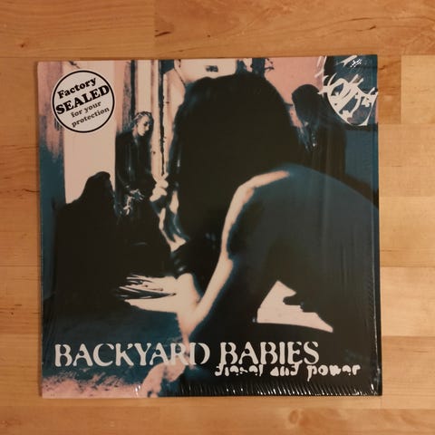 Myydään Backyard Babies -EP "Something to Swallow" vuodelta 1991. Ikä näkyy, mutta noin yleisesti koko setti on mainiossa kunnossa kansilehdestä levyyn.