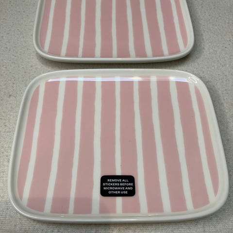 Marimekon Piccolo eli vihreä-valkoinen raidallinen 12x15 cm lautanen.