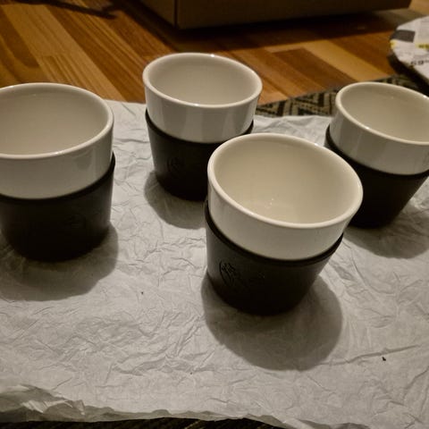 Eriväriset sekä hieman erikokoiset lattemukit.3kpl pienempiä muut suht samankokoisia sekä yksi erilainen. Myydään vain settinä.