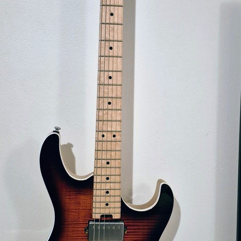 Hyväkuntoinen Cort 7-kielinen baritonikitara kotisoitosta, kun tuli hankittua normiskaalainen tilalle. Kaikin puolin siisti ja toimiva, jos nyt joitain pieniä käytön jälkiä kitaran mattamustassa pinnassa. Edellinen omistaja vaihtanut alkuperäisten passiivimikkien tilalle EMG 57-7 & 66-7 aktiivimikit ja samalla kaikki sähköt uusittu, soveltuvat hyvin kaikenlaiseen kepeämmästä rockista teknisempään metalliin ja jyristelyyn. Kielinä tällä hetkellä Dunlop Heavy Core Heavy 7 10/60 setti ja vireenä ADGCFAD.