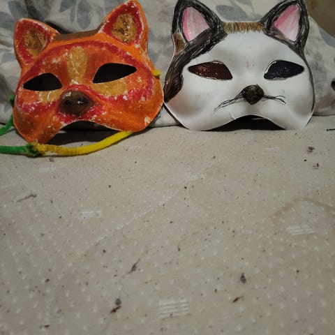 Myydään Mustaruskea therian naamio.