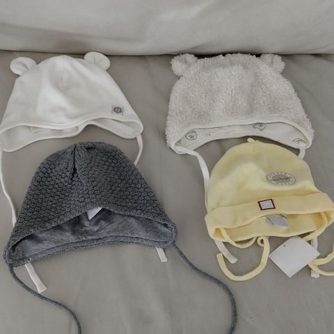 Uusia vauvan päähineitä ja uusia kankaisia ruokaliinoja. Päähineistä ehdin laput poistaa, mutta ei ehtinytkään käyttöön. Kankaiset ruokalaput on pakkauksesta, joten näissä ei hintalappuja.