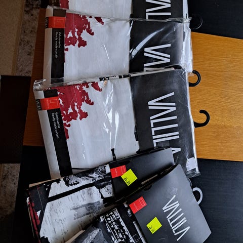 Käyttämätön Vallila Olkipukki verhokanga. Voin postittaa kuluja vastaan. Tähän löytyy myös kappaverho, ei kuulu hintaan