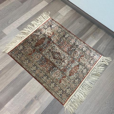 Upea käsin solmittu persialainen silkkimatto. Yli miljoona solmua neliömetrillä. Todella upea matto, joka on kudottu kokonaan silkistä erittäin hienoilla ja tiiviisti kudotuilla langoilla. Siinä on kauniit 15–20 cm pitkät hapsut. Tämä matto hapsut mukaan lukien on 100 % silkkiä.
