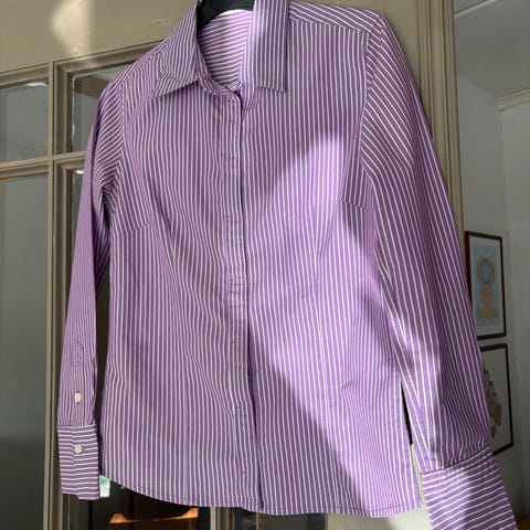 Kevyt ja hengittävä 100% puuvillakangas tekee paidasta miellyttävän päällä. Malli väljä, röyhelökaulus, pitkähköt hihat. Kunto hyvä, ei tahroja eikä repeämiä