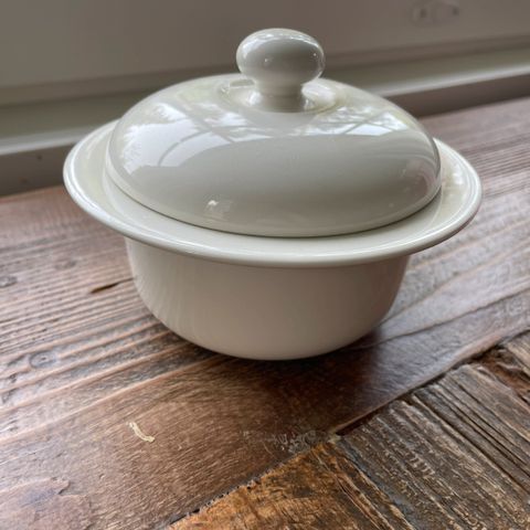 Arabia Arctica valkoinen sokeripaloille tarkoitettu kulho, jossa kansi. Käyttämätön, vain vähän pölyinen säilytyksestä.