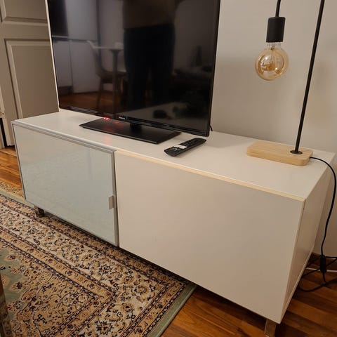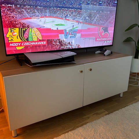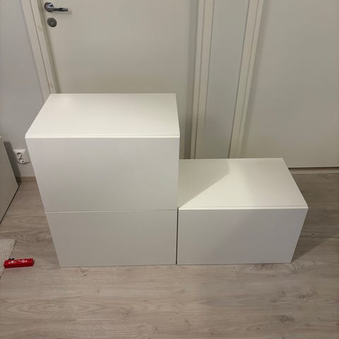 Bestå taso 2 kpl 120cm leveitä kaappeja. Molemmissa takana itsetehdyt reiät johdoille. Voi käyttää myös päällekkäin. Ks. lisäkuvat, joissa kuvattu jäljet.