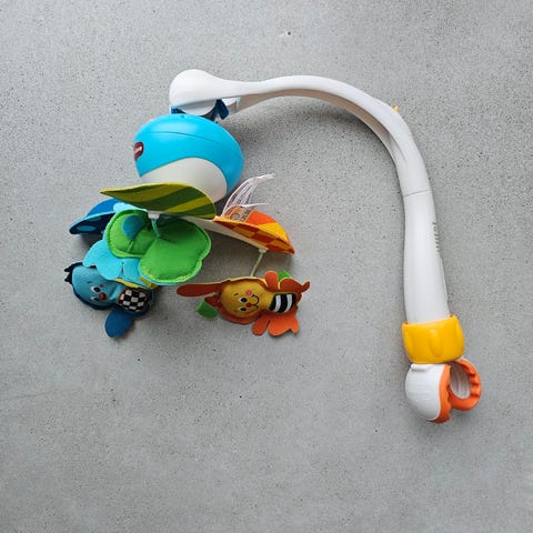 Vauva voi potkia ja huitoa roikkuvia leluja. Kulkeutuu Porin tien varteen myös.