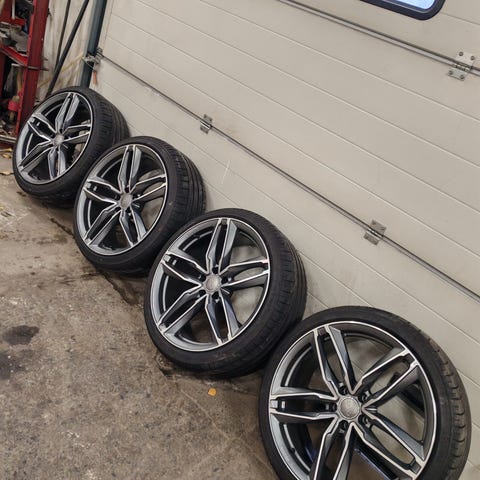 Hyvät 20" vanteet kohtalaisilla 275 45 20 nastarenkailla.