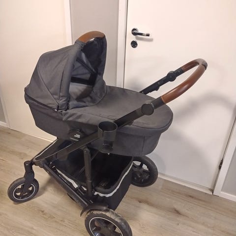 Hyväkuntoinen ja täydellinen yhdistelmävaunupaketti, sisältää autoon asennettavan turvakaukalon telakan, isofix kiinnityksellä.
