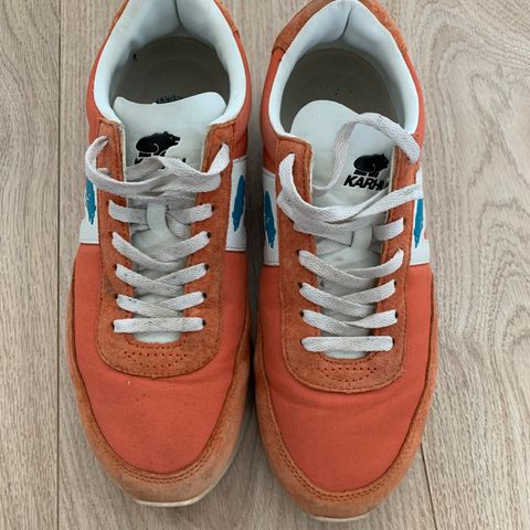 Myydään hyväkuntoiset Karhun Mestari-Jaffa Orange/Black - matalavartiset tennarit. Koko lapussa lukee 35, mutta mielestäni vastaa ennemmin kokoa 36. Kenkiä on pidetty tosi vähän ja myynkin nämä, koska kengät tuntuvat minulle liian isoilta.