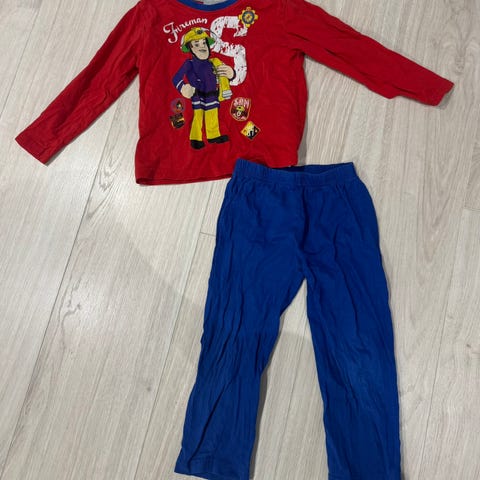 Sininen palomies sami trikoopusero punaisilla hioilla 98cm.