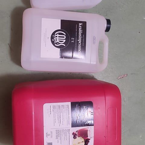 Käytetty polttoöljysäiliö. Aikoja sitten poistettu käytöstä ja pesty. Kaikki korkit ehjät. Saa ison sadevesisäiliön.