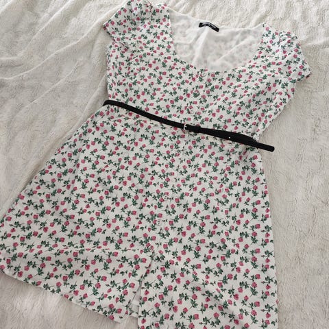 Vuorellinen, taskullinen mekko, takana vetoketju.
