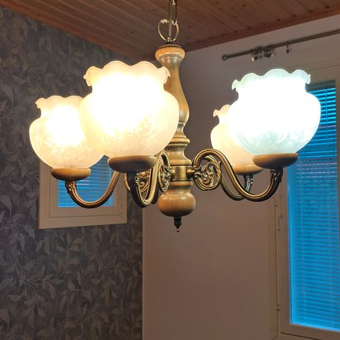Kattovalo kolmella valolla. Nykyaikainen töpseli kiinnitys. Mukaan minigrippipussissa erillinen kiinnitysrauta ja ruuvit. Irrotettu toimivana ja muistelisin, että yksi valo palaneena.