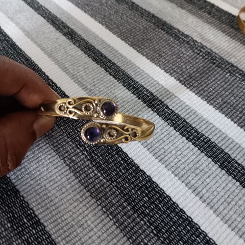Korumetallista valmistettu rannekoru. Säädettävä koko. Vihreä onyksi, aito jalokivi.