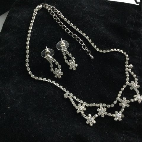 Uudenveroiset strassi kaulakoru ja korvakorut. Yhteensä 20e.
