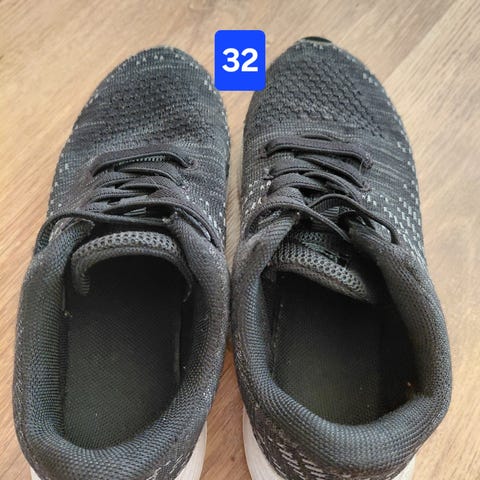 Koko 32 valkoiset tennarit kultakimalledetaljilla.