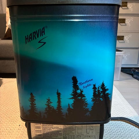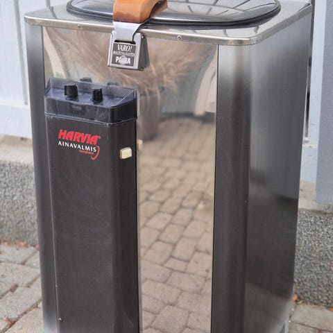 Harvian sähkökiukaan erillinen elktroninen ohjausyksikkö, lämpöanturi ja silikonikaapelit.