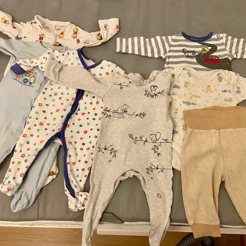 Pieni vaatepaketti pojalle, koko 68. Paketti sisältää 4xbody, 4xhousut sekä uimapuvun.
