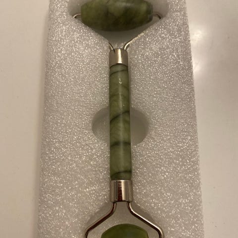Skin Cooler Jade Kasvohierontalaite vaaleanpunaisella värillä. Valmistettu ruostumattomasta teräksestä ja jade-kivestä. Suunniteltu hieromaan ihoa, tekemään siitä pehmeämmän ja sileämmän, sekä edistämään verenkiertoa ja ihon kimmoisuutta. Laite auttaa rauhoittamaan ja vähentämään turvotusta ja punoitusta kasvoilla. Käytetään kasvojen hierontaan ja ihonhoitoon.