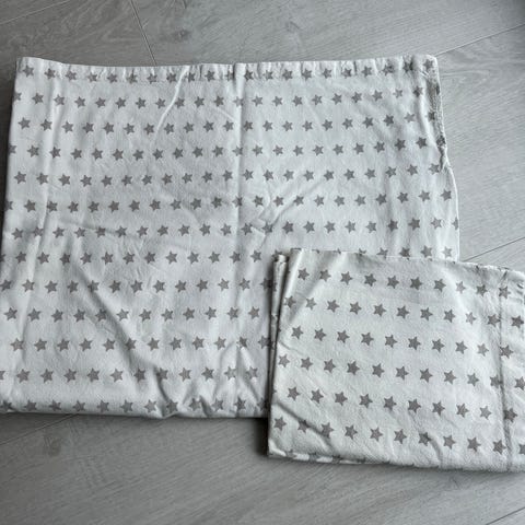 Myydään vauvan eläinaiheinen pussilakana ja tyynyliina. Sopiva koko pinnasänkyyn. Siistissä kunnossa, pesty hajusteettomalla pesuaineella.