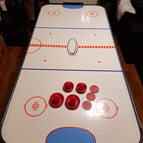 Myydään Mini Air Hockey peli. Mukana kiekko, kaksi mailaa. Paristoyttöinen.