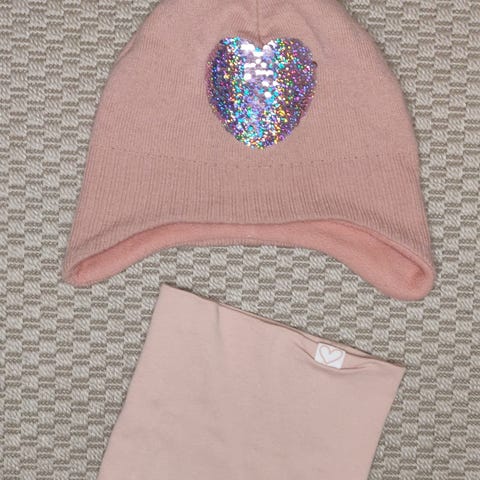 H&M siitit käytetyt tuubihuivi ja pipo. Pipo kokoa 110/128cm, fleecevuori. Pipossa hiukan nukkaa.