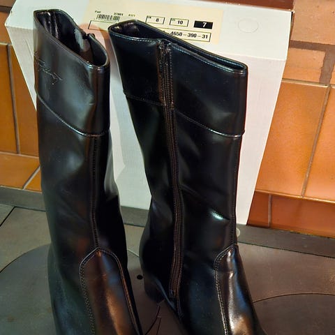 Vaihdatin korkolaput luistamattomaan materiaaliin, mutta kengät jäivät käyttämättä polvileikkauksen takia. Suutarissa kenkiin tuli muutama jälki, joka ei kuitenkasn haittaa käyttöä. Näistä 2 viimeistä kuvaa.