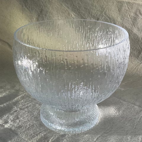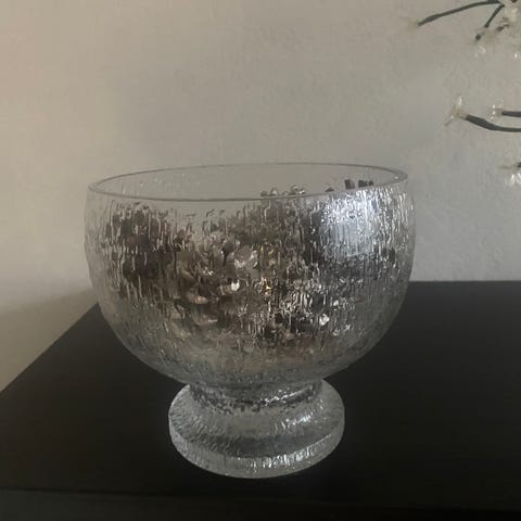 Myydään Kekkerit-sarjan boolimalja ja kauha. Maljan halkaisija yläosasta 19cm j korkeus 18cm.