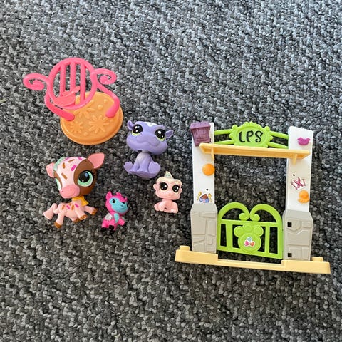 Littlest Pet Shop lastenlelut, neljä erilaista hahmoa. Lelut ovat pieniä, värikkäitä ja valmistettu muovista. Soveltuvat lasten leikkeihin ja keräilyyn.