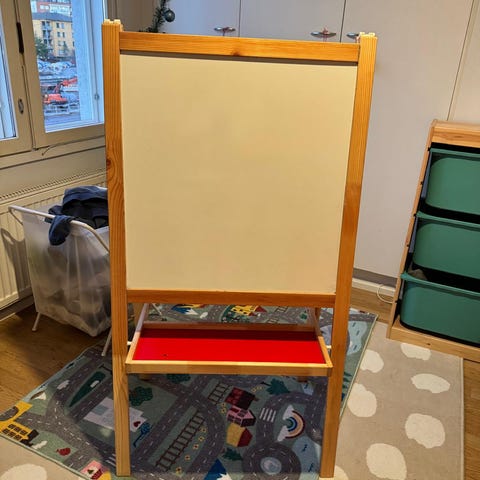 Ikean MÅLA piirrustusteline. Maalattu valkoiseksi ja maali osittain kulut pois. Ja tussin jälkiä löytyy. Uudelleen maalaamalla saisi kuin uuden 👌🏼