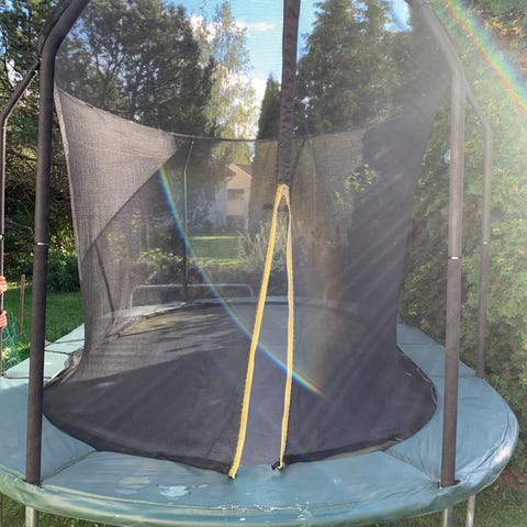 Myydään hyväkuntoinen ja suhteellisen vähän käytetty trampoliini. Alkuperäinen pakkaus, kaikki osat tallessa. Myydään muuton alta, uuden asunnon pihalla ei ole tilaa trampoliinille.
