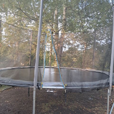 Turvaverkko yhdeltä sektorilta irti trampoliininatosta. Turvaverkon vetoketju rikki.
