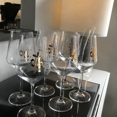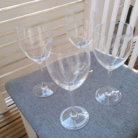 Kaappien perukoilta pois pölyttymästä. Riedelit käyttämättömiä, viinilasit hyvässä kunnossa