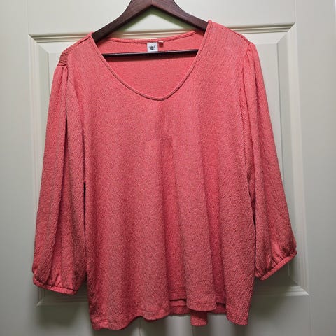 Siisti, ehjä ja hyväkuntoinen pusero, koko XL, kermanvalkoinen väri. Pusero on valmistettu pehmeästä ja joustavasta materiaalista, jossa on rypytetyt hihat ja V-pääntie.