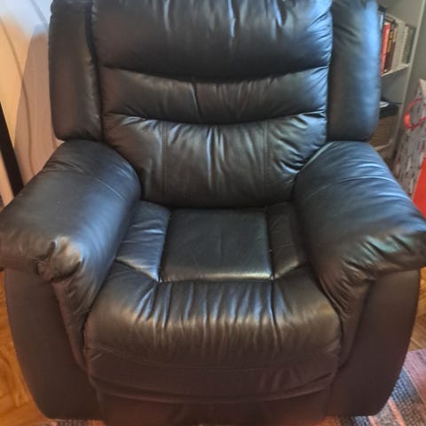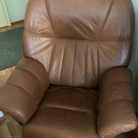 Lepotuoli , perinteinen tv tuoli + rahi. Nahka/kn . Kuluvat osat nahkaa taustat keinonahkaa. Hyvä tuoli istua pyörii keinuu. Edullinen tarjous.