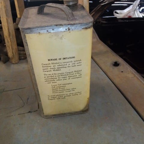 Vanha öljykanisteri Vacuum Oil yhtiöltä Suomen markkinoille maahantuotu. Purkissa lukee haalealla O/Y Vacuum Oil Company A/B sekä Helsinki - Helsingfors Import. Sisältänyt S.A.E No.20-20W moottoriöljyä.