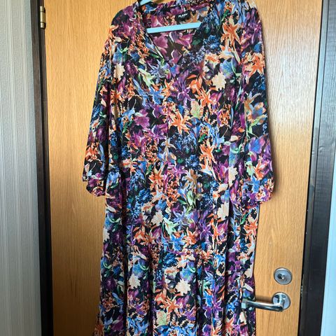 Zizzin kaunis kukkatoppi mustalla pohjalla ja sinisillä yksityiskohdilla, käytetty mutta ehjä. Koko L, vastaa noin kokoa 48.