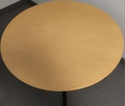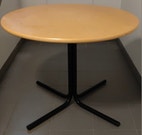 Hyväkuntoinen pyöreä pöytä mustalla metallijalalla. 90cm halkaisijaltaan. Korkeus 70cm. Pari pientä naarmua pinnalla, ne näkyy kuvissa.