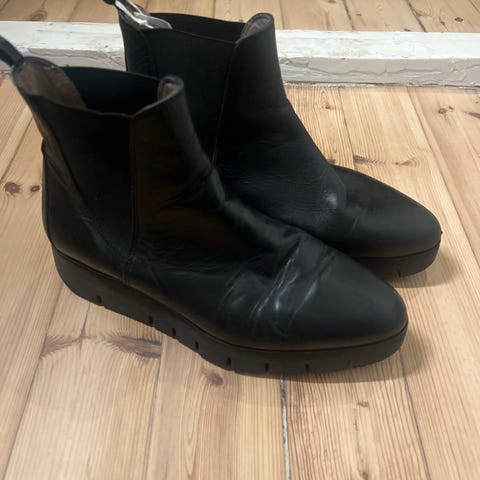 Myydään vähän käytetyt ja hyväkuntoiset kauniit UNISA-merkin mustat nilkkurit, koossa 39. Materiaaliltaan aitoa nahkaa ja pohja synteettistä/kumimaista materiaalia, joka pitää hyvin liukkaallakin säällä. Takana korkoa noin 9cm, edessä n. 1,5 cm. Vastaavat kokoaan. Espanjassa Valmistettu.