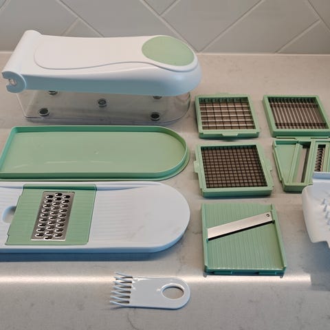 Kuvan mukainen näppärä leikkuri. Sopii kaikenlaiseen hienontamiseen.