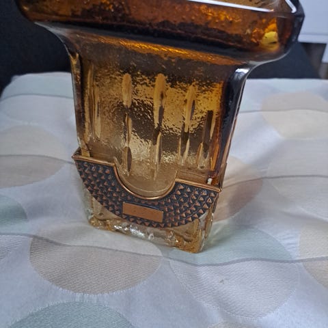 Iittala Maljakko on valmistettu keltaisesta tai meripihkan värisestä lasista ja siinä on koristeellinen, geometrinen muotoilu. Maljakko soveltuu sisustuselementiksi ja kukkien esillepanoon. Sen muoto ja väri tekevät siitä erottuvan koriste-esineen kotiin tai toimistoon. Maljakon on suunnitellut Pentti Sarpaneva Kumela/Turun hopea. Yläosan vanne on pronssia, ei kaiverrettu, vähän löysästi kiinni. Ehjä, siisti. Valmistettu noin 1970-luvulla. Painavaa design lasia, miltei 1 kg. Suuaukon halkaisija noin 8*8 cm, alaosan levennyksestä noin 10*10 cm, korkeus noin 21 cm.
