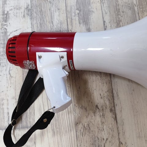 Tämä megafoni on suunniteltu erityisesti urheilutapahtumiin ja kannustustilaisuuksiin.