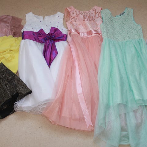 Myydään mekko, hinta 4 €, koko lapussa lukee age 10/12 years, nouto arkisin, kissatalous