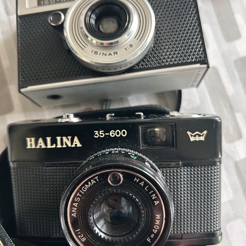 Upea setti vanhoja kameroita ja muuta valokuvaukseen liiittyvää.