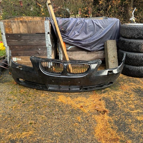 BMW E60 -mallin etupuskuri, väri musta. Sopii kyseiseen automalliin. Puskuri on käytetty mutta hyvässä kunnossa