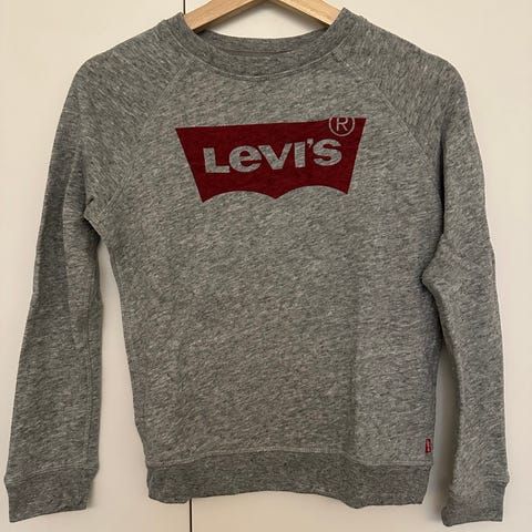 Levi's collegepusero vaaleanpunaisena, naisten koko XS. Edessä on Levi's-logo brodeerattuna.