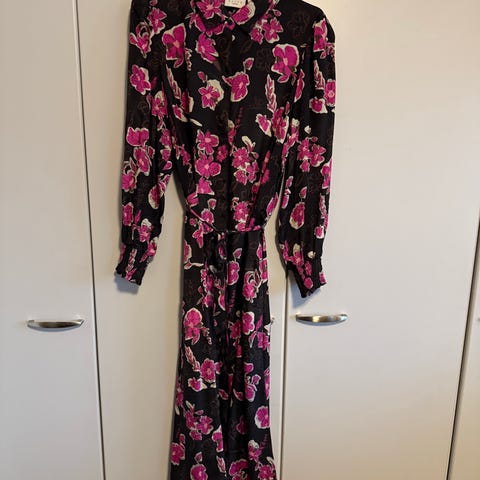 Tummansininen kukkapusero, vähällä käytöllä ollut, uudenveroinen, ehjä ja siisti, koko 52, reilu mitoitus.